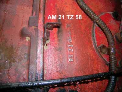 Le N° peut aussi se trouver à gauche juste devant le levier de prise de force. A ……..TZ 56 qui sont bien distincts . Entre les deux on trouve écrit à l'envers 10 03 Le numéro est A 10 03 TZ 56 ( Année 1956 ) |